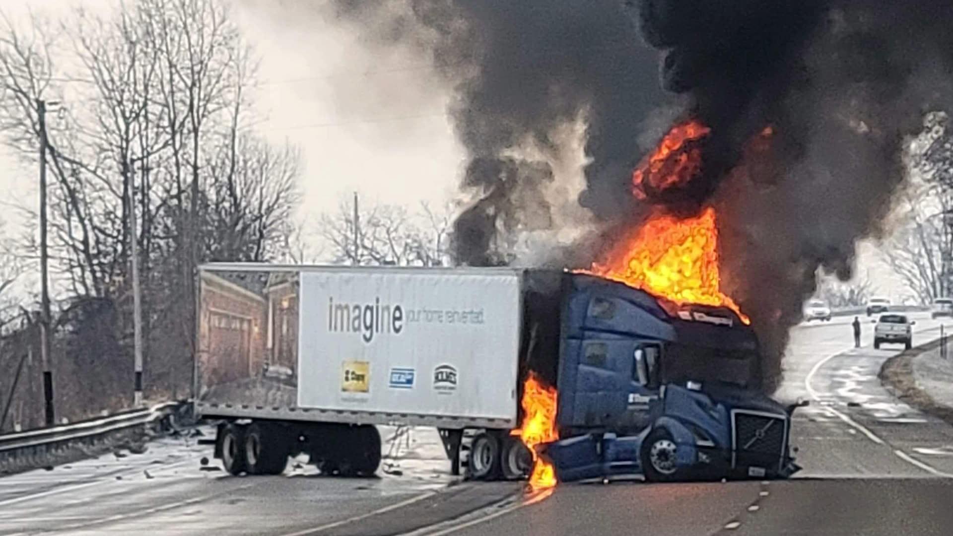 Truck Erupts In Flames After Being Hit By Wayward Car Causing Major Backup In Blaine